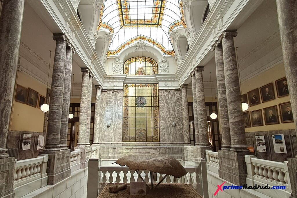 El espacio central del museo, cubierto por una gran vidriera que deja pasar la luz natural, está rodeado de balconadas de hierro forjado y vitrinas de madera originales. Esta atmósfera hace que la visita sea no solo un recorrido científico, sino también una experiencia estética única.